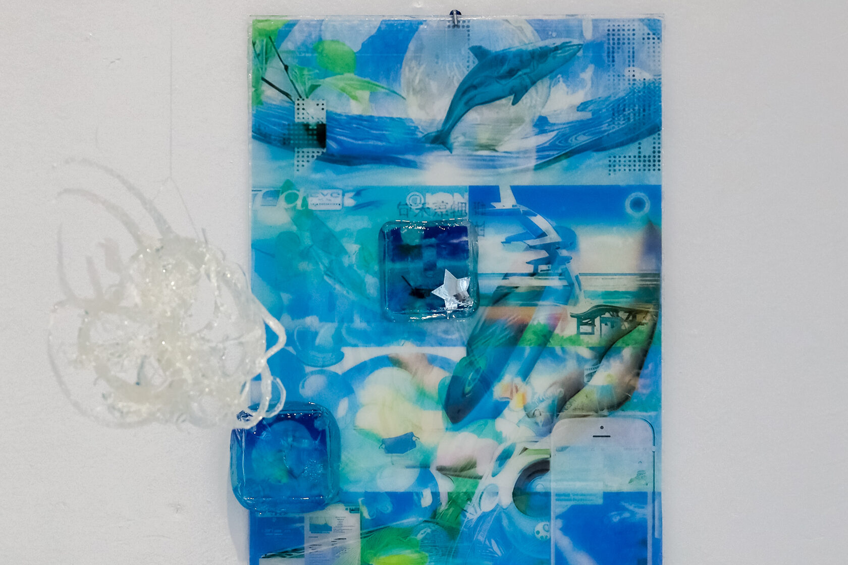 АЗ: Конечно! Надо сказать, что я всех просила писать комментарии к своим работам от первого лица, чтобы они были как можно более личными, потому что общая рамка этой выставки предполагала подчеркнуто осознанное отношение к субъективности. И как раз работа Даши Арбузовой «Воспоминания о будущем» является показательной в этом смысле. Потому что она действительно создала работу, которая рефлексирует ностальгию по двухтысячным. Интересно, что сама художница эту ностальгию разделяет, но самого времени, в силу возраста, помнить не может. Она родилась в 2001 году. 2000-е, в ее представлении, были отмечены целым комплексом ожиданий и надежд, представлений о том, что почти всё уже, во-первых, хорошо, а во-вторых, будет еще лучше. Визуальным воплощением этого периода для нее является эстетика Frutiger Aerо*. Даша хорошо изучила интернет-течения того времени и из них достает импульсы для того, что делает сегодня.